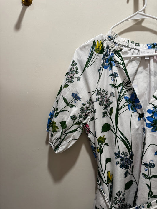 Sugar Lips Dress Small White with multicolored floral pattern