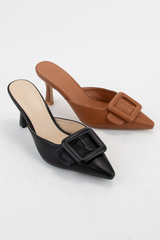 RECTANGLE BUCKLE POINTED-TOE HEEL