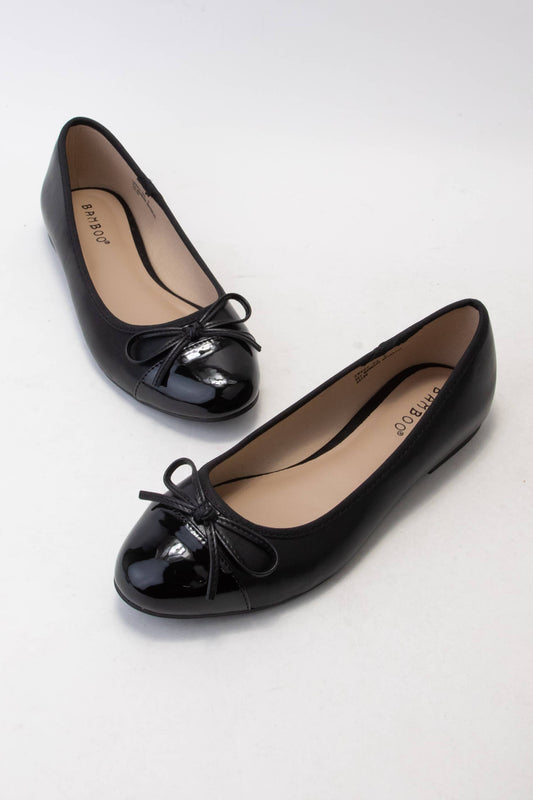 BOW DETAIL ROUND TOE CAP FLATS