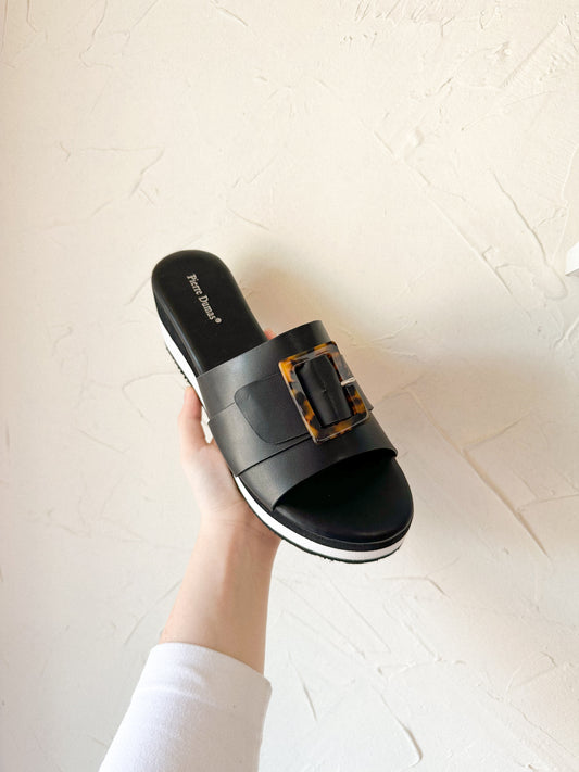 Black Platform Sandal with Buckle