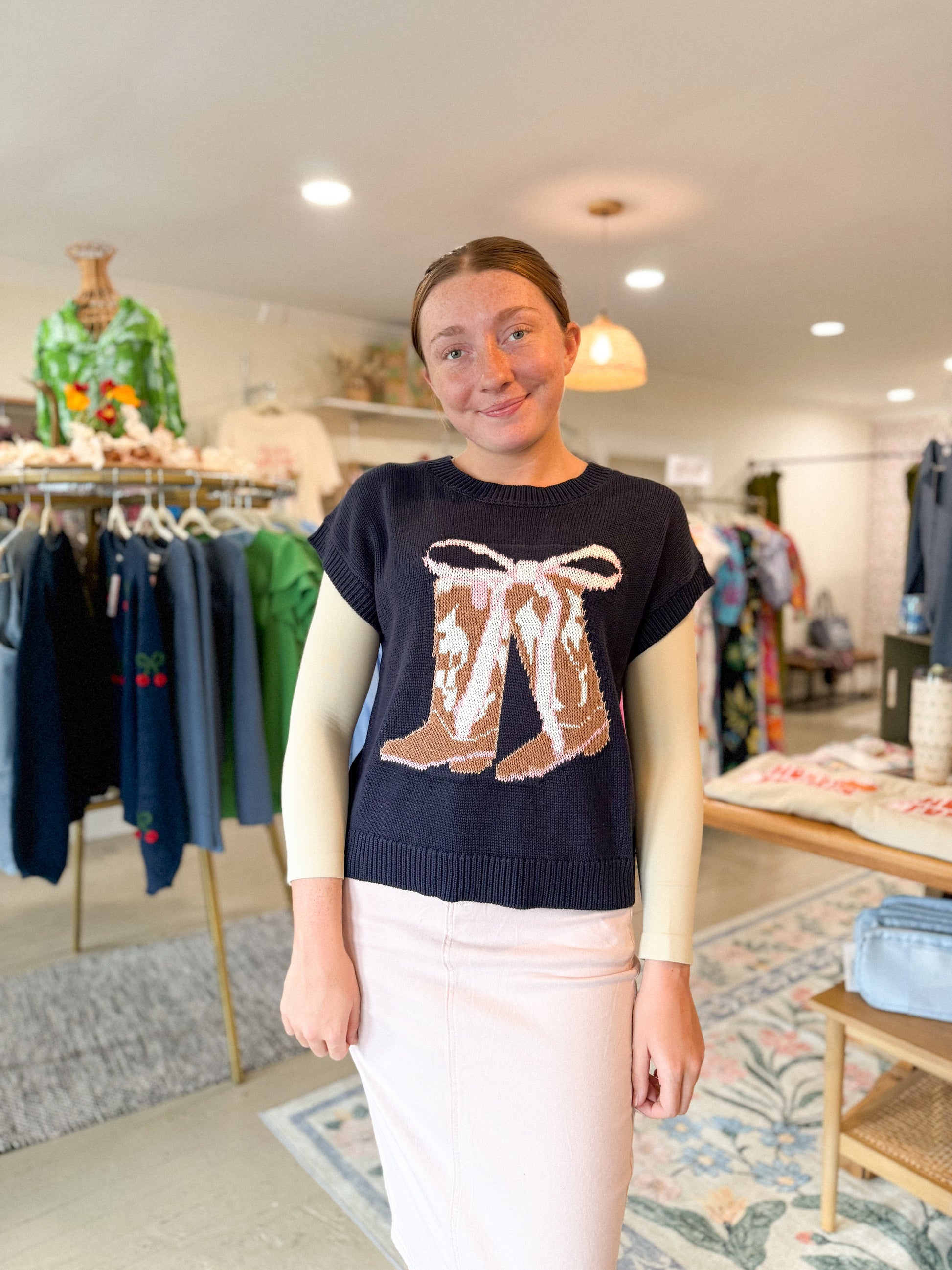 Boots and Bows Sweater Top