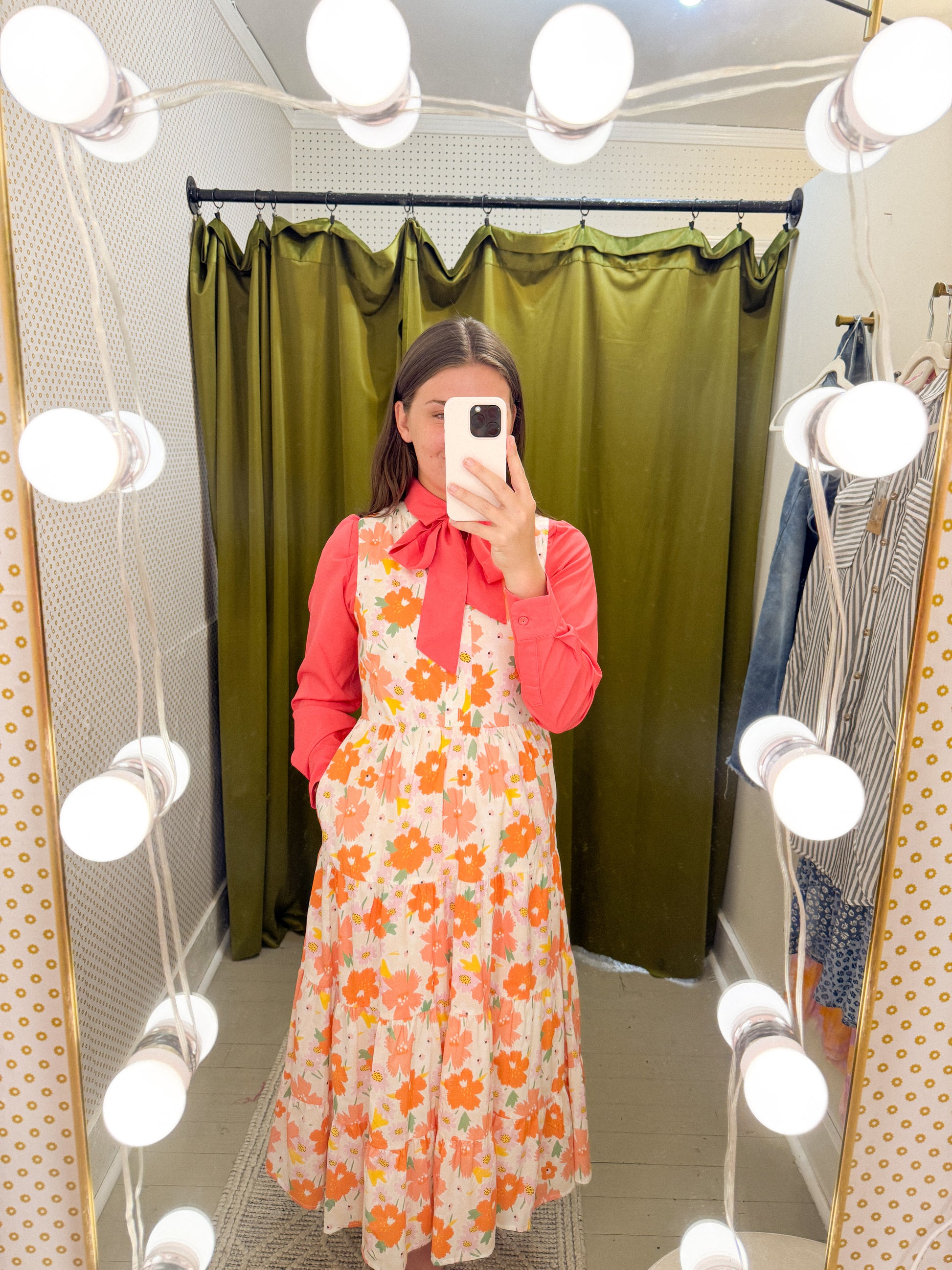 LONG SLEEVE BUTTON UP NECK TIE BLOUSE TOP * 100% Polyester.