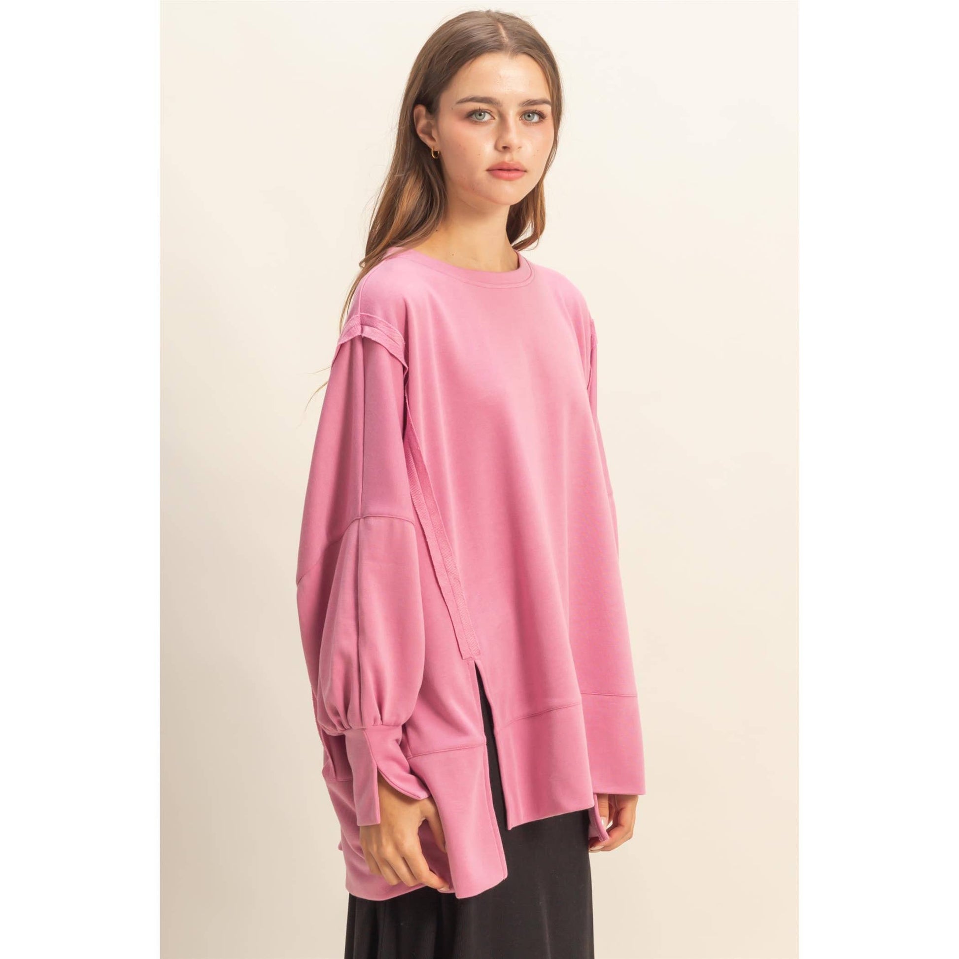 Introducing an effortlessly stylish oversized long-sleeve tee, perfect for those seeking both comfort and style. The distinctively large and draped silhouette ensures a relaxed fit, while the highlighted raglan sleeves with unique extended cuffs add a touch of modern elegance, making it a stand-out choice for casual outings. 100% Polyester