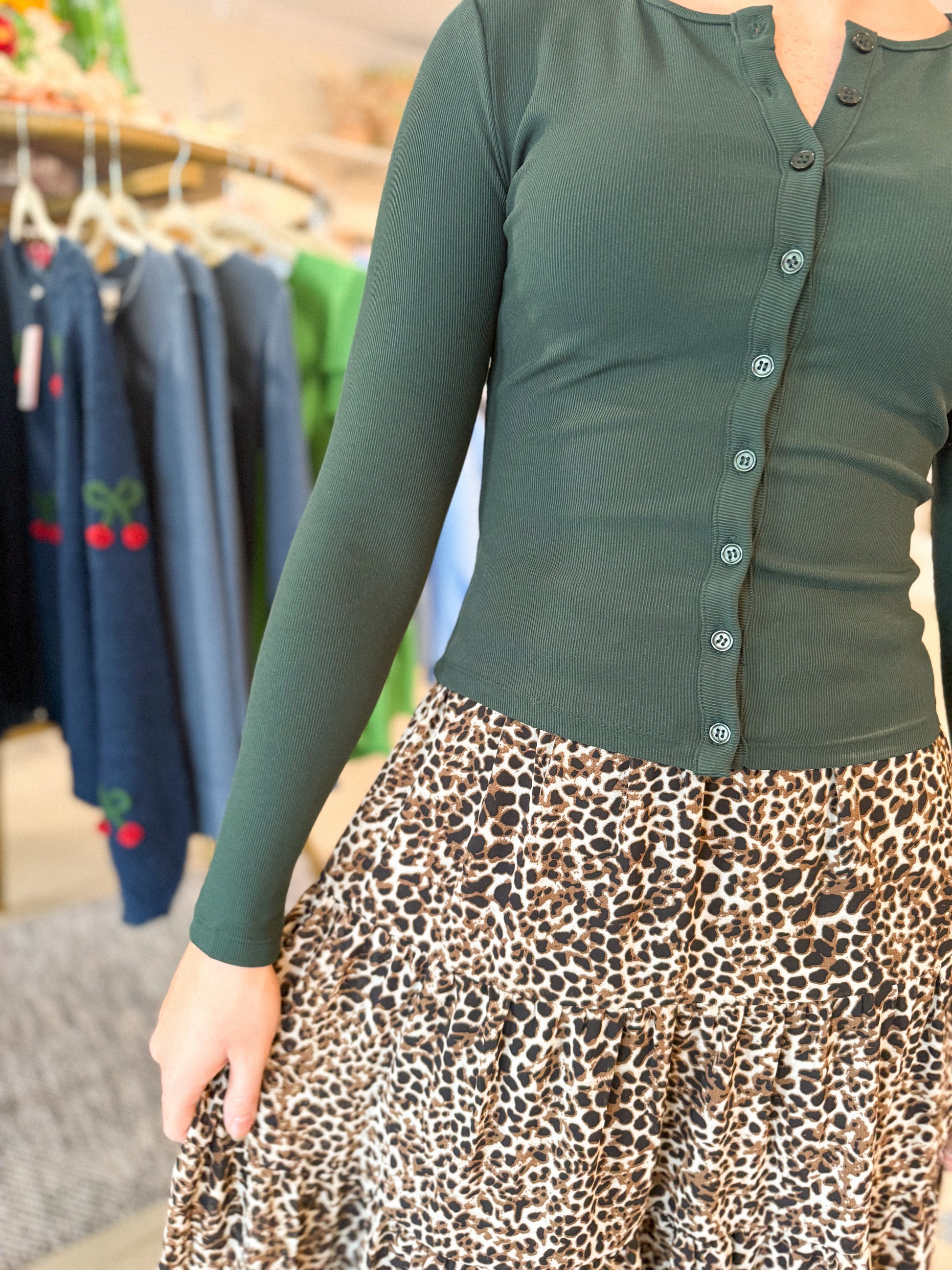 ROUND NECKLINE LONG SLEEVES BUTTON DOWN FUNCTIONAL BUTTONS SOLID RIBBED PATTERN KNIT TOP 93%POLYESTER 7%SPANDEX