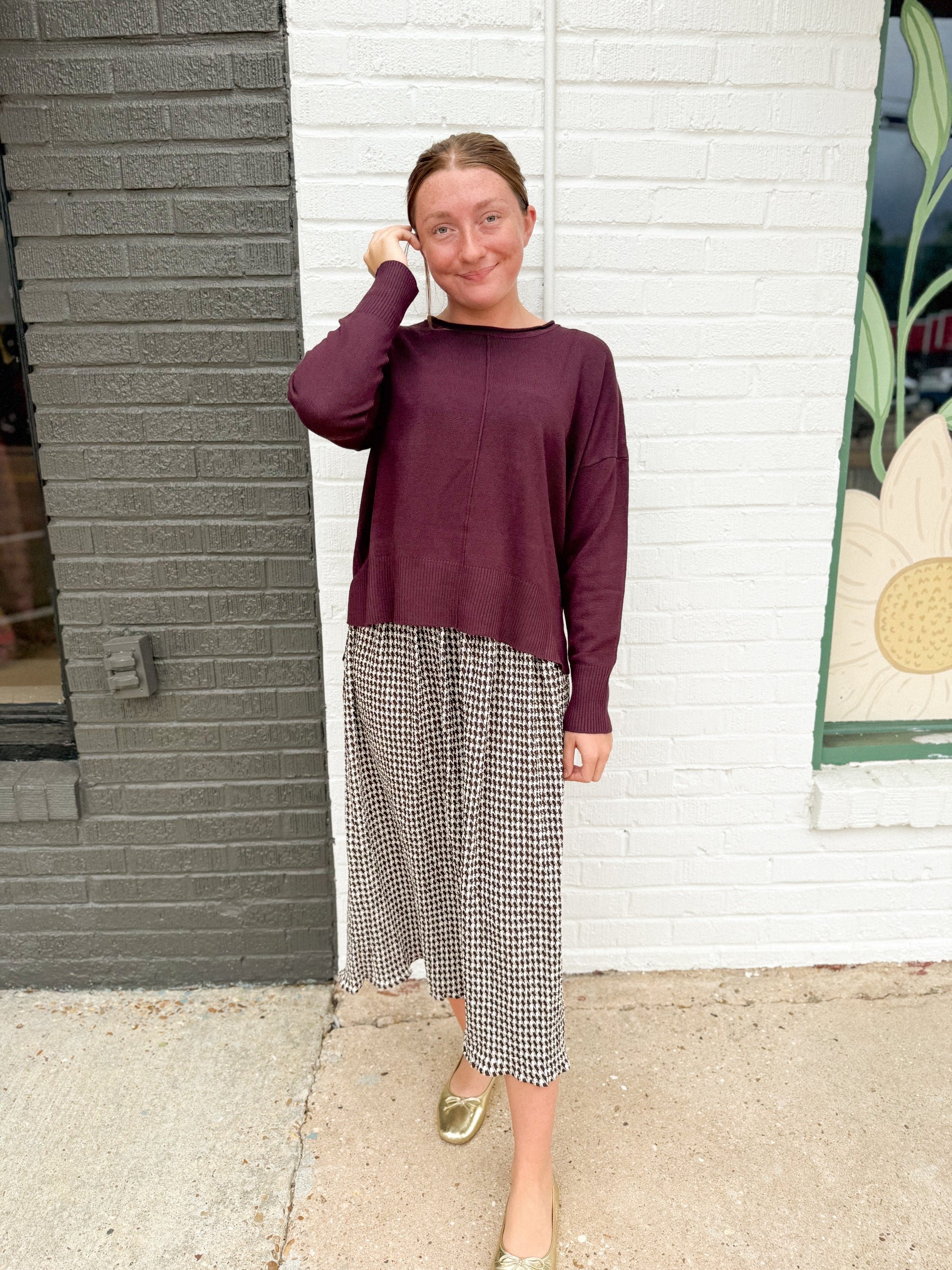 This Sweater Is An Absolute Must-Have If You Wish To Look Trendy. Not A Player Drop Shoulder Shirt Is Made With A Round Roll Neckline And Long Sleeves With Ribbed Knit Detailing At The Cuffs And Hem. Features A Relaxed Fit. 85% Acrylic / 15% Nylon